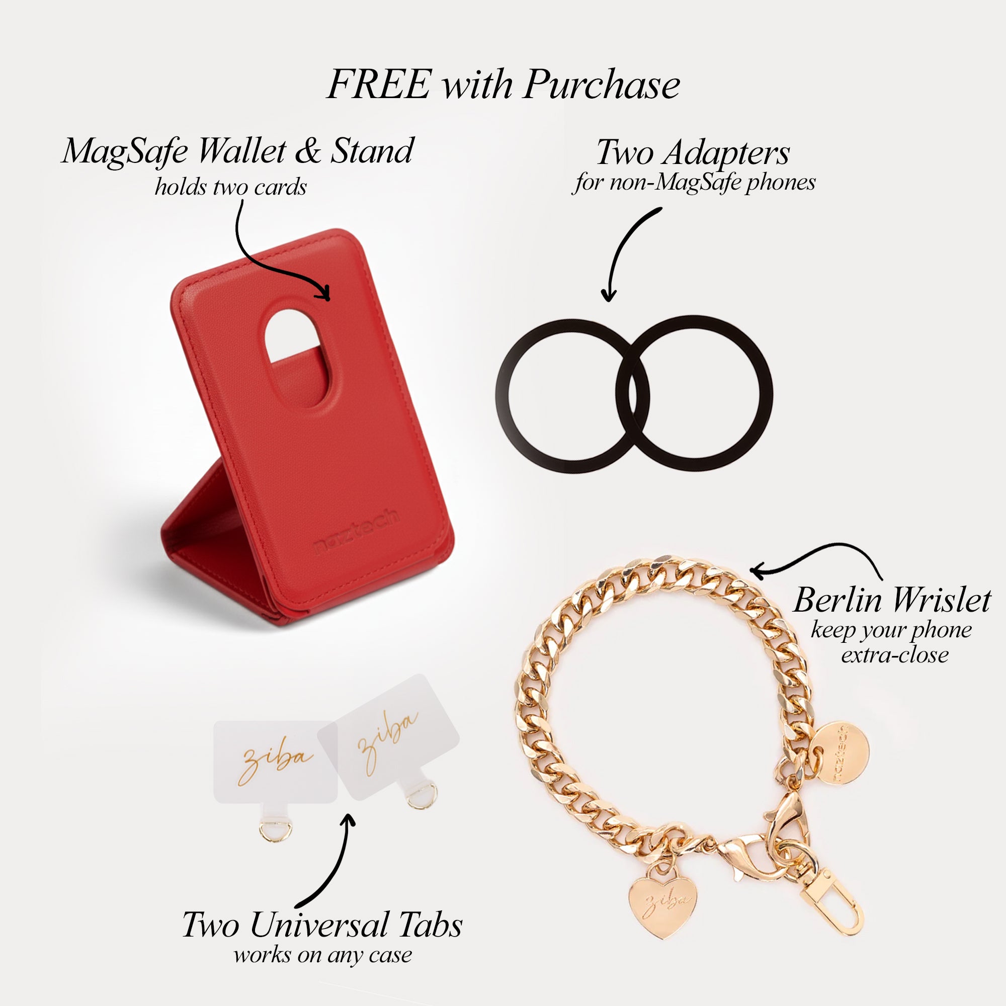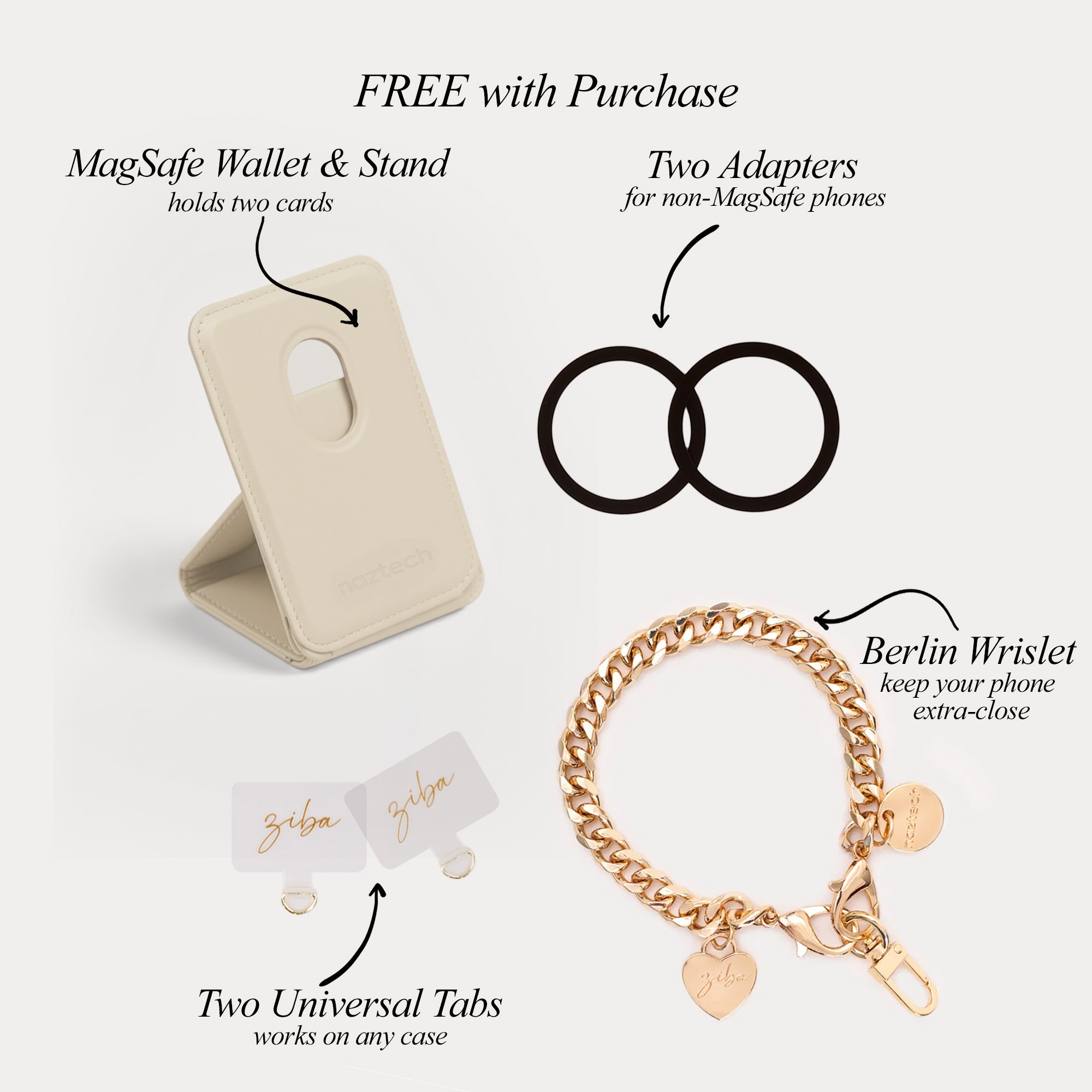 • Includes a complimentary wristlet (use as a purse charm or phone wristlet)